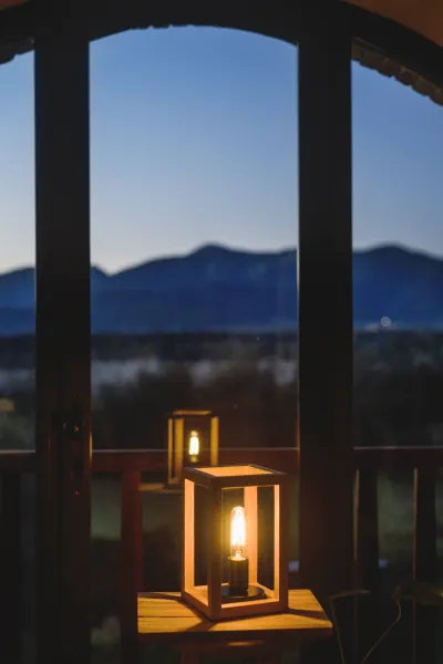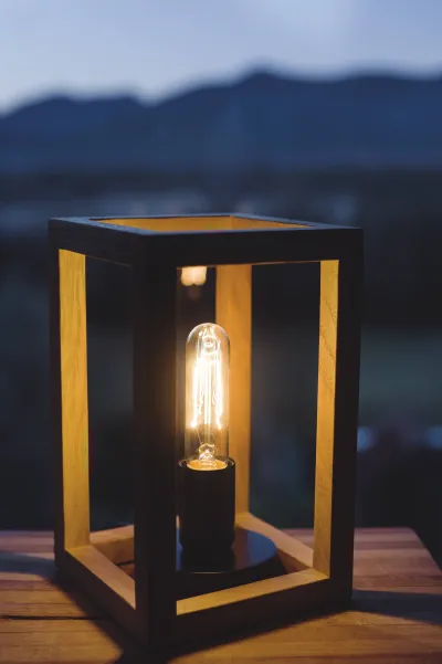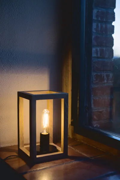 Lámpada feta amb fusta de roure i amb unions a cartabó.